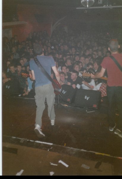 In a repeat of what happened the first time they came over, Fugazi missed the ferry. I was playing in the first band and when we went on stage Fugazi still hadn’t shown up. There were no mobile phones then so my Dad drove into the gig to tell us that Fugazi were in Holyhead at 4 pm and were due to get the next ferry. In the event, things worked out fine. Fugazi arrived in plenty of time, during our set, and literally shook McGonagles that night. The PA kept threatening to fall over and we had to station people to just hold the speaker stands up. There was a lot of dancing and many people felt they could get up on stage and jump into the crowd at will – something Fugazi and plenty of others in the audience didn’t want. I was amazed afterwards when we went to count the money with Ian McKaye, singer with Fugazi. There was £1400 left after the venue and PA had been paid. Ian said “how about we take £550 and you use the rest to do other things”.